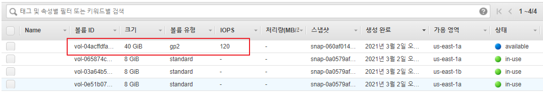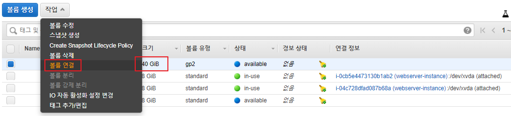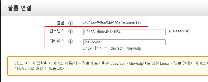 # 생성한 볼륨을 EC2 인스턴스에 적용