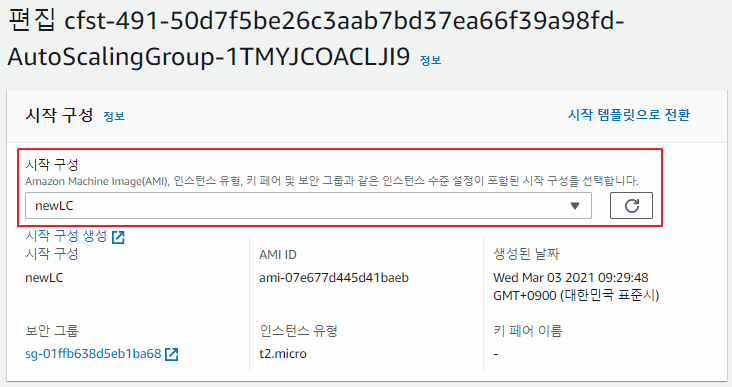 #5 Auto Scaling Group에 새롭게 생성한 시작 구성으로 변경