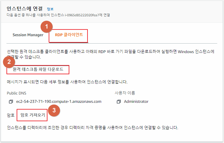 RDP 연결을 위한 접속지 정보와 계정 정보 확인