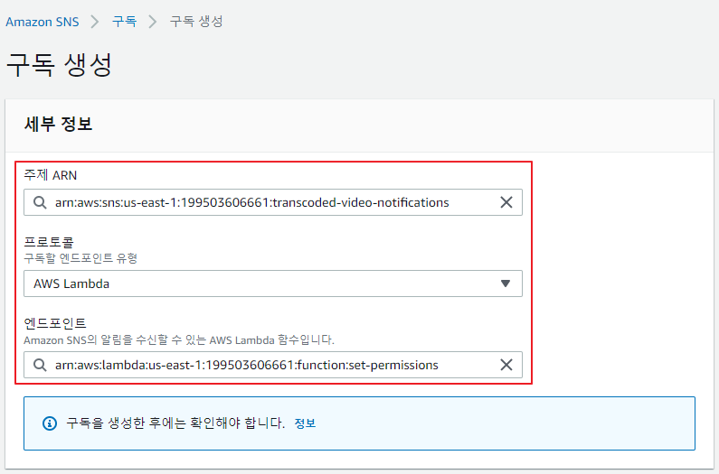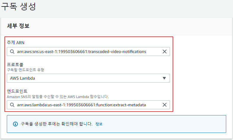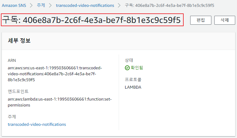 "EventSubscriptionArn":"arn:aws:sns:us-east-1:199503606661:transcoded-video-notifications:7d6fe943-417f-4104-b8a1-33a40f64f1d2",