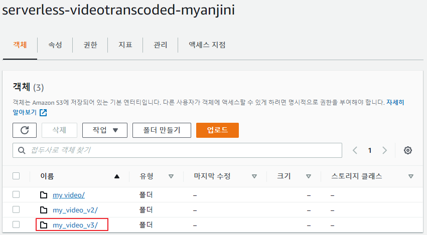 #2 트랜스 코딩 버킷의 모든 오브젝트 삭제