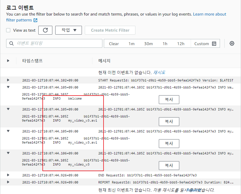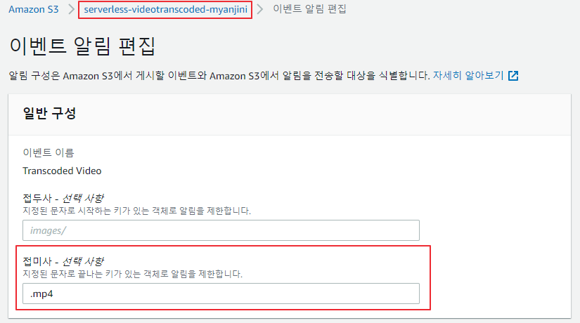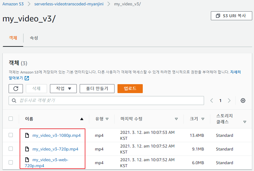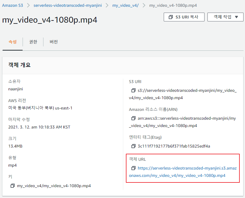 #8-1 트랜스 코딩된 파일이 저장되는 버킷의 파일명(객체명)을 변경