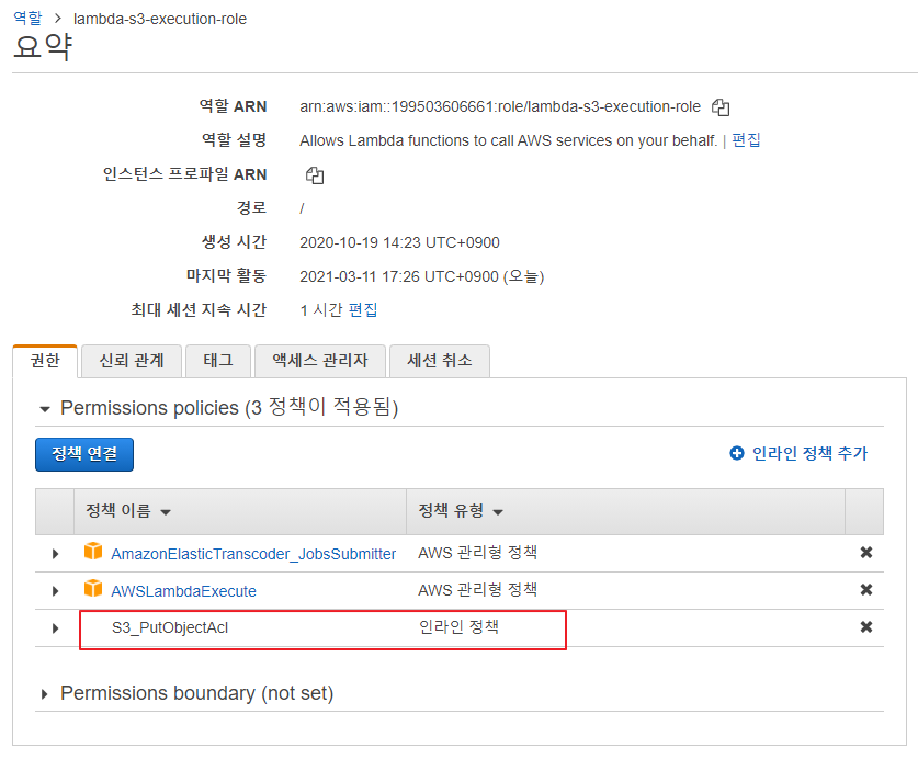 #5 람다 함수가 객체의 ACL을 변경할 수 있는 권한을 추가