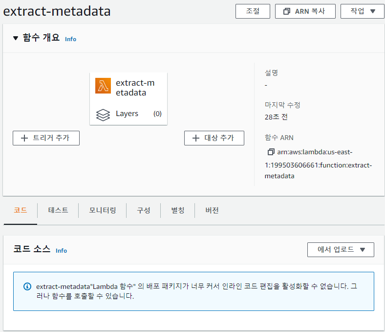 "deploy": "aws lambda update-function-code --function-name extract-metadata람다함수의ARN --zip-file fileb://Lambda-Deployment.zip"