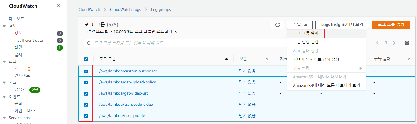 Elastic Transcoder 파이프라인 삭제 확인