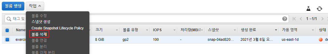 볼륨 ⇒ 볼륨 분리 → 볼륨 삭제