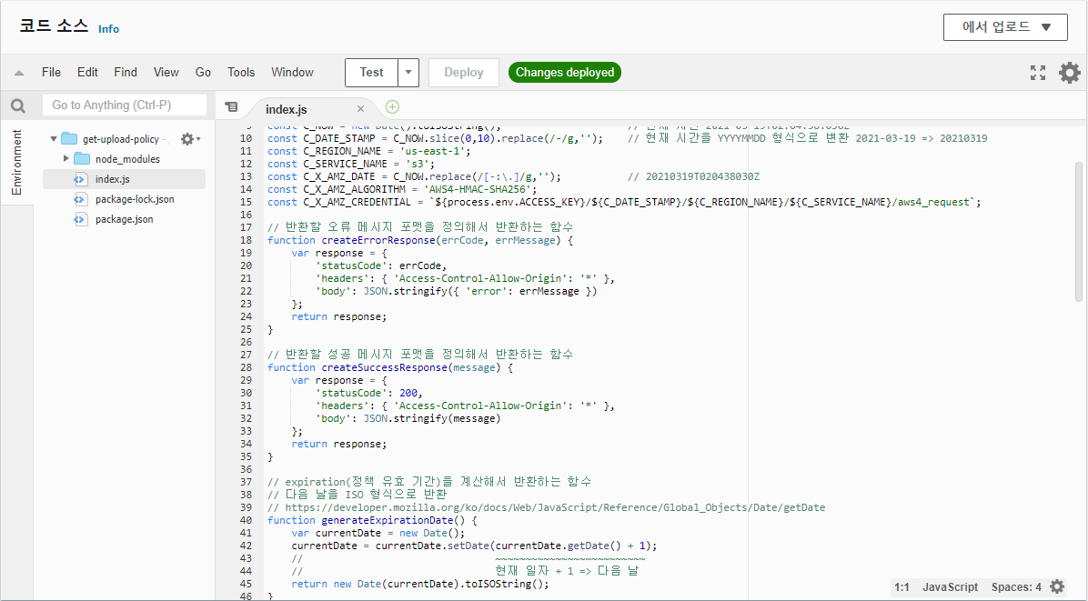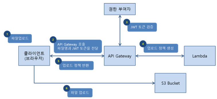 Lambda 함수 ⇒ 사용자를 확인하고 S3에 파일을 업로드하는데 필요한 정책과 서명을 생성