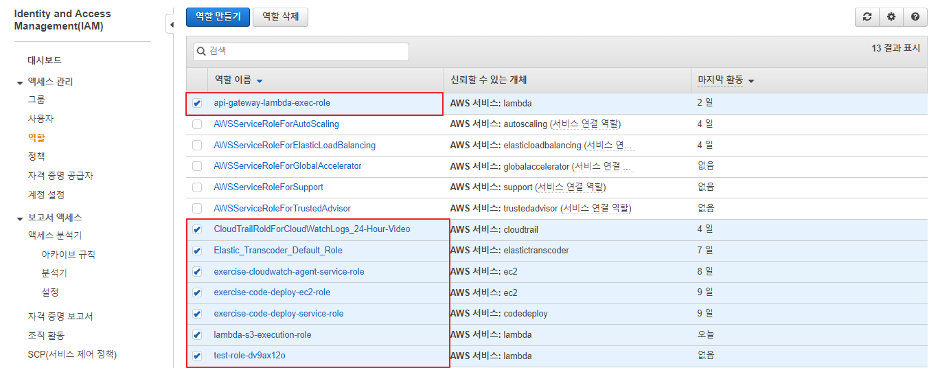실습 리소스 정리