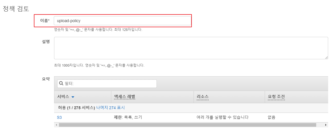 #1 upload-s3 사용자 생성 및 업로드 정책 생성