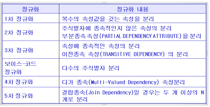 -정규화란 다양한 유형의 검사를 통해 데이터모델을 좀 더 구조화하고 개선시켜 나가는 절차에 관련된 이론