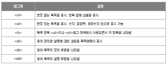 <div>목록태그의 종류 : ul, ol, dl</div>