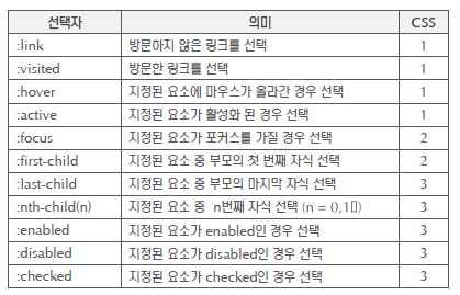 **가상클래스 선택자 요소
