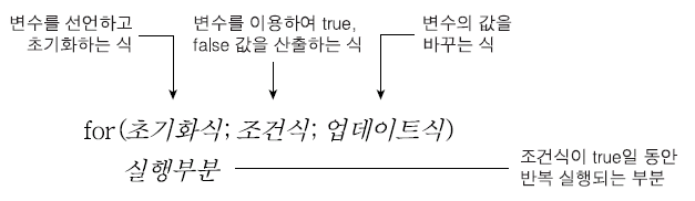 //for문 : 초기식 -> 조건식 -> 명령문 -> 증감식 : 수평방향