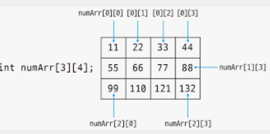 //중첩for문을 이용하여 2차원배열 내용을 전체 출력하시오.