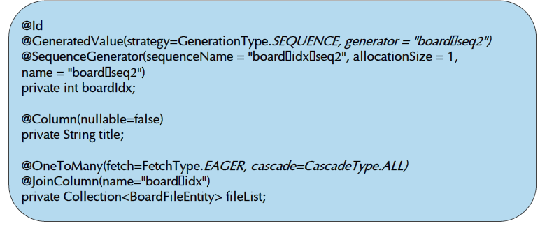 엔티티 생성하기, board.entity 패키지 생성 후 BoardEntity, BoardFileEntity 클래스 생성
