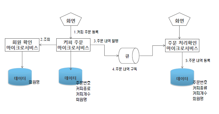 마이크로서비스 간에 데이터 연계가 필요할 경우 이를 해결하기 위해 큐잉 시스템인 카프카 시스템을 설치