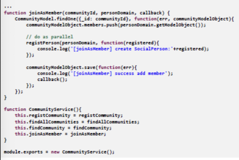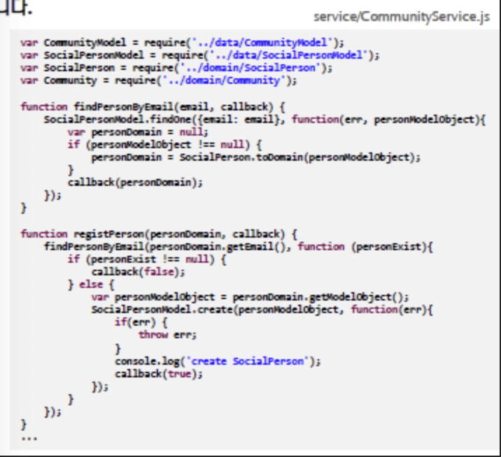 업무로직을 구현하는 CommunityService는 데이터 접근을 위하여 mongoose Model을 사용합니다.