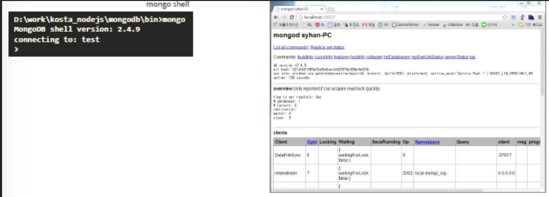mongod --dbpath ../data/db || mongo(잘 설치 되었나 확인)