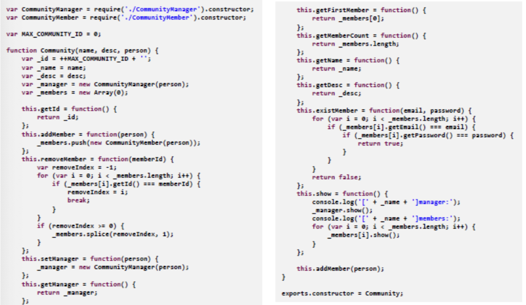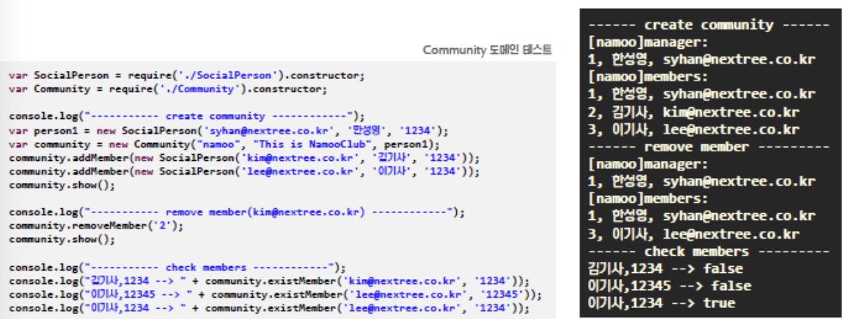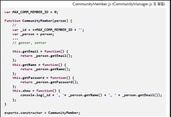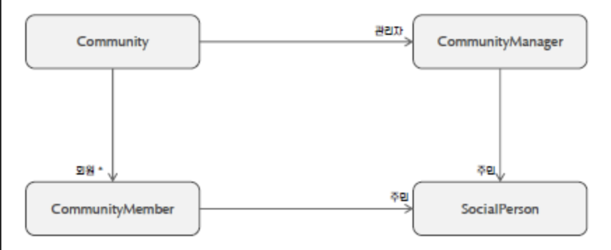 CommunityMember 및 CommunityManager는 각각 회원 및 관리자를 표현하며 SocialPerson 객체를 Encapsulation 합니다.