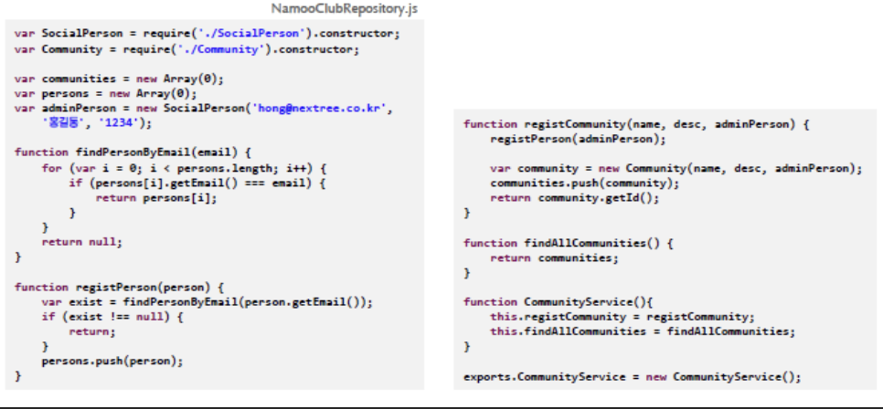 NamooClubRepository.js 는 CommunityService 객체를 모듈 형태로 제공하며 자체 저장소가 있습니다.
