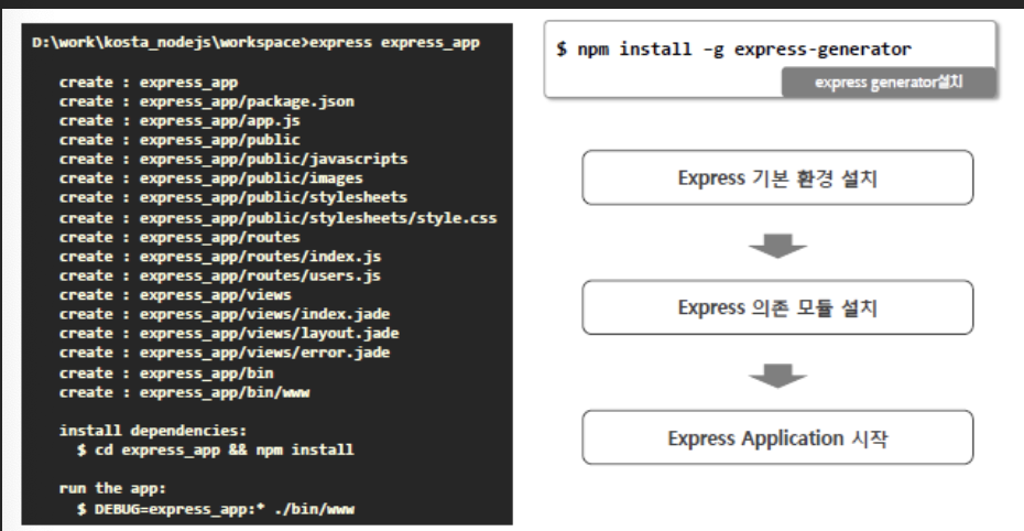 Node도 Express라는 프레임워크 안에서 더 짧은 코드로 간결하게 구현가능