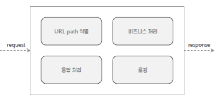 URL path 식별, session 처리, 비즈니스 처리, 응답 처리, 로깅 등