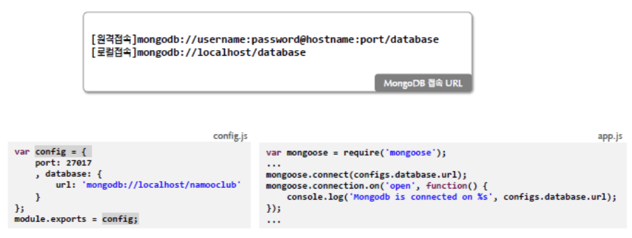 mongoose의 connect() 함수로 접속 가능합니다.