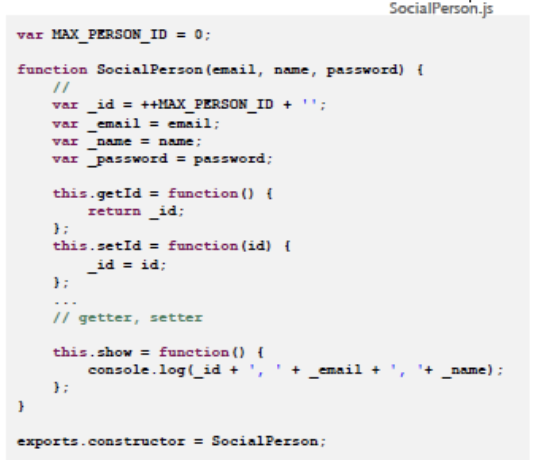 SocialPerson 객체 생성을 위한 생성자 함수를 정의하고 모듈로 등록합니다.