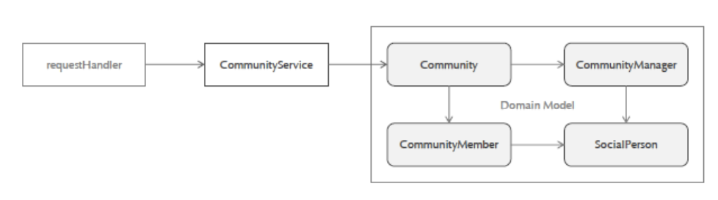 역할 분리의 원칙에 따라 Community 도메인 모델을 관리하는 서비스 객체가 필요합니다.