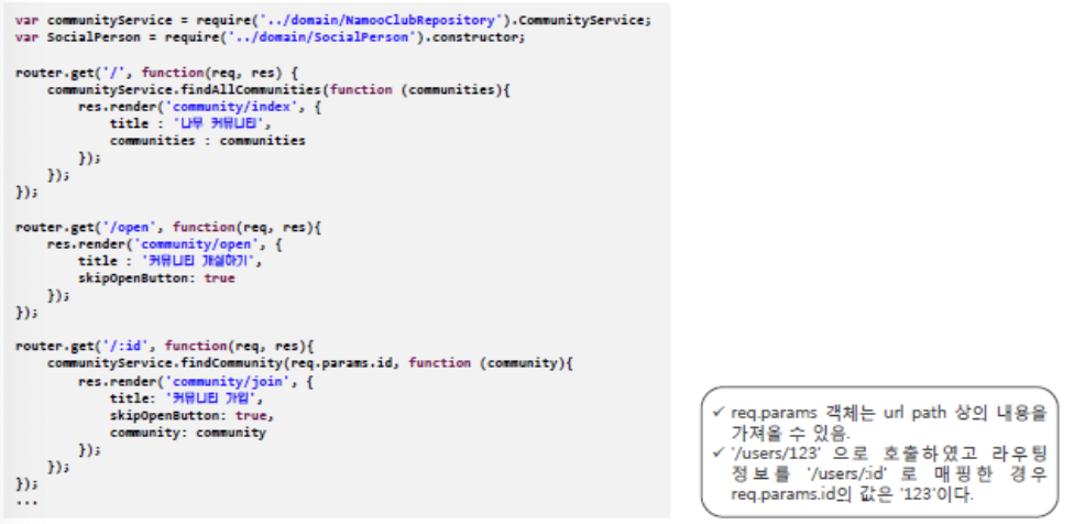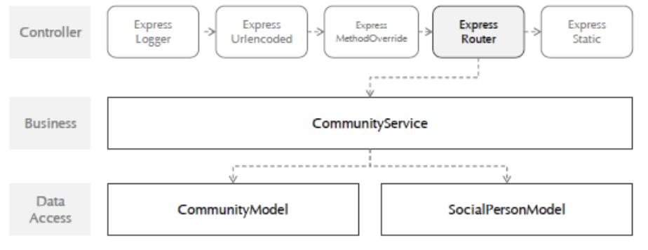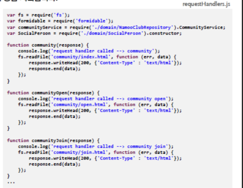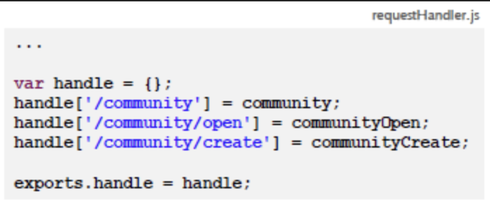 =>router : controller역할, handler : 실질적인 business 실행, community service를 사용해야 한다.