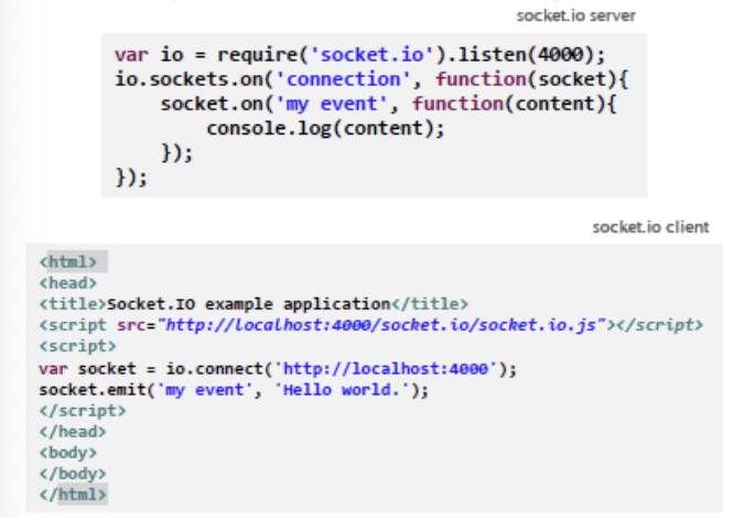 전역에 존재하는 io 객체에 connect() 함수로 접속하고 socket 객체의 emit() 함수로 메시지를 서버로 전송 가능합니다.