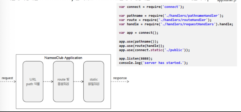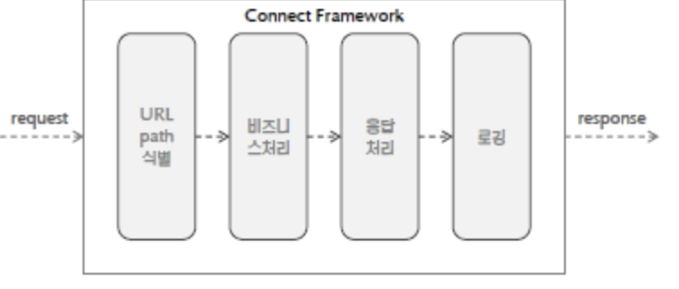 Connect와 같은 Middleware 프레임워크는 이와 같은 처리를 쉽게 할 수 있는 방법을 제공합니다.