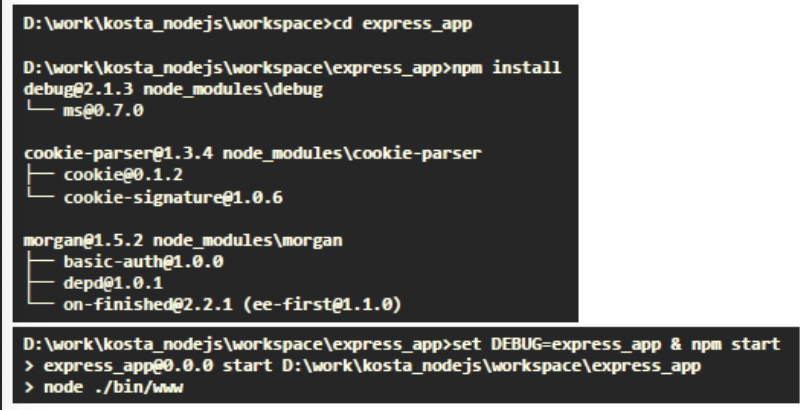 Express 애플리케이션 내의 package.json을 변경한 후 npm install을 수행합니다.
