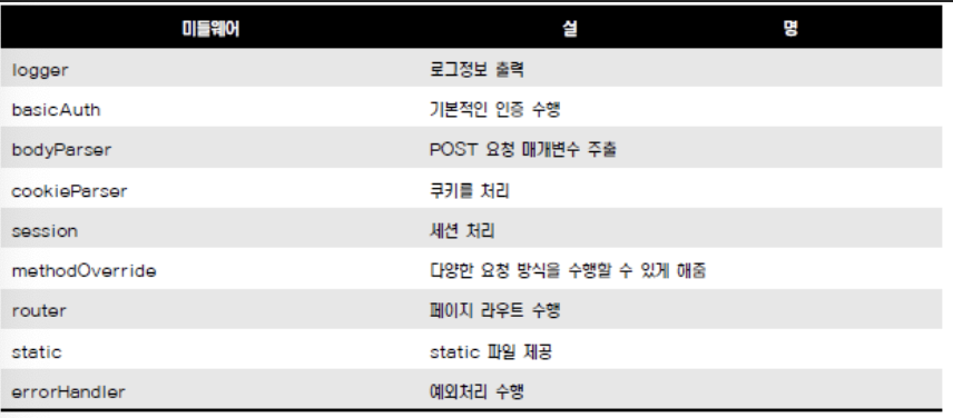 로깅, 에러처리, static 파일 처리와 같은 유용한 Middleware를 제공합니다.