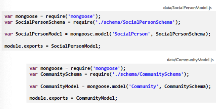 스키마를 표현하는 별도의 모듈을 정의하며 주로 Document의 속성과 데이터 타입을 정의합니다.