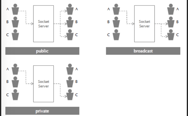 Public 통신은 자신을 포함한 모든 접속자에게 메시지를 전달합니다.