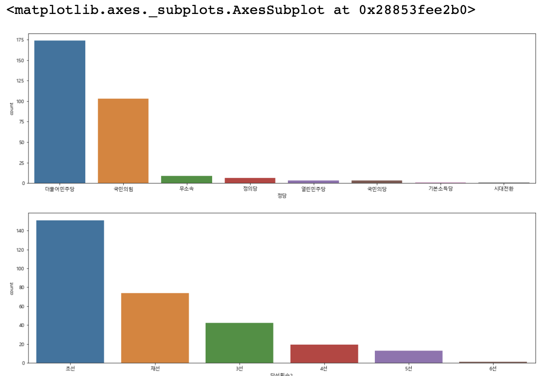 - countplot - x축 이나 y축 중에서 하나만 설정할 수 있음