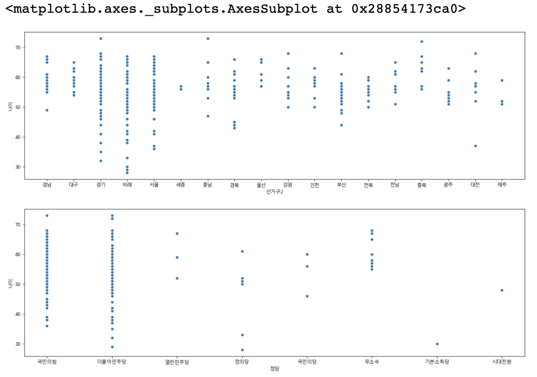 sns.scatterplot(data=member_df, x='정당', y='나이', ax=axes2)