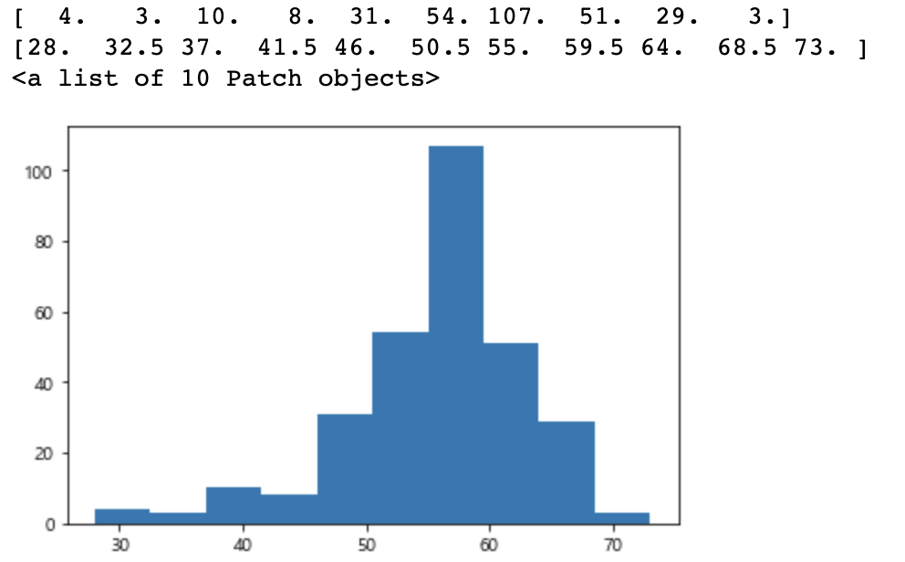 arrays, bins, patches = plt.hist(member_df['나이'], bins=10)