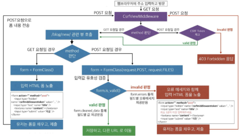 폼 처리 시에 같은 URL(즉 같은 뷰)에서 GET/POST로 나눠 처리