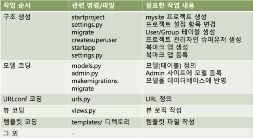- 프로젝트 및 앱 개발에 필요한 디렉토리와 파일 생성
