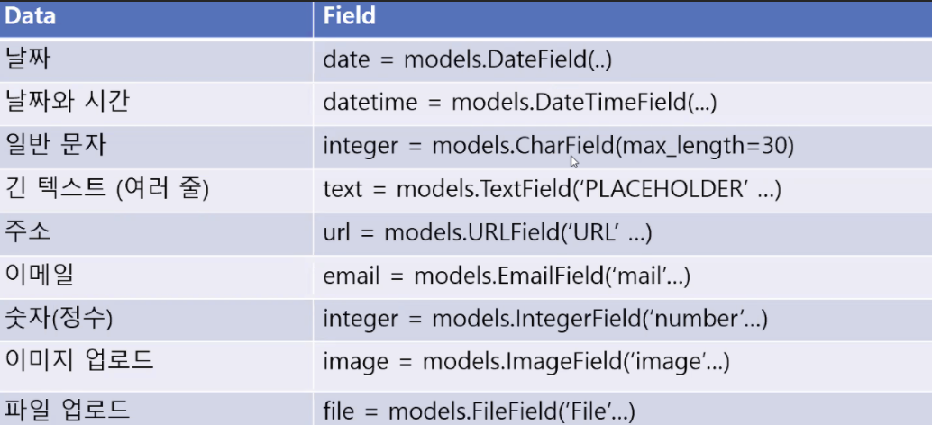 Data Field 종류