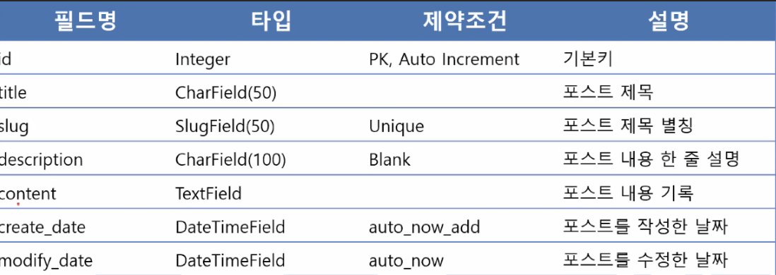 테이블 정의에 관련된 Model 코딩