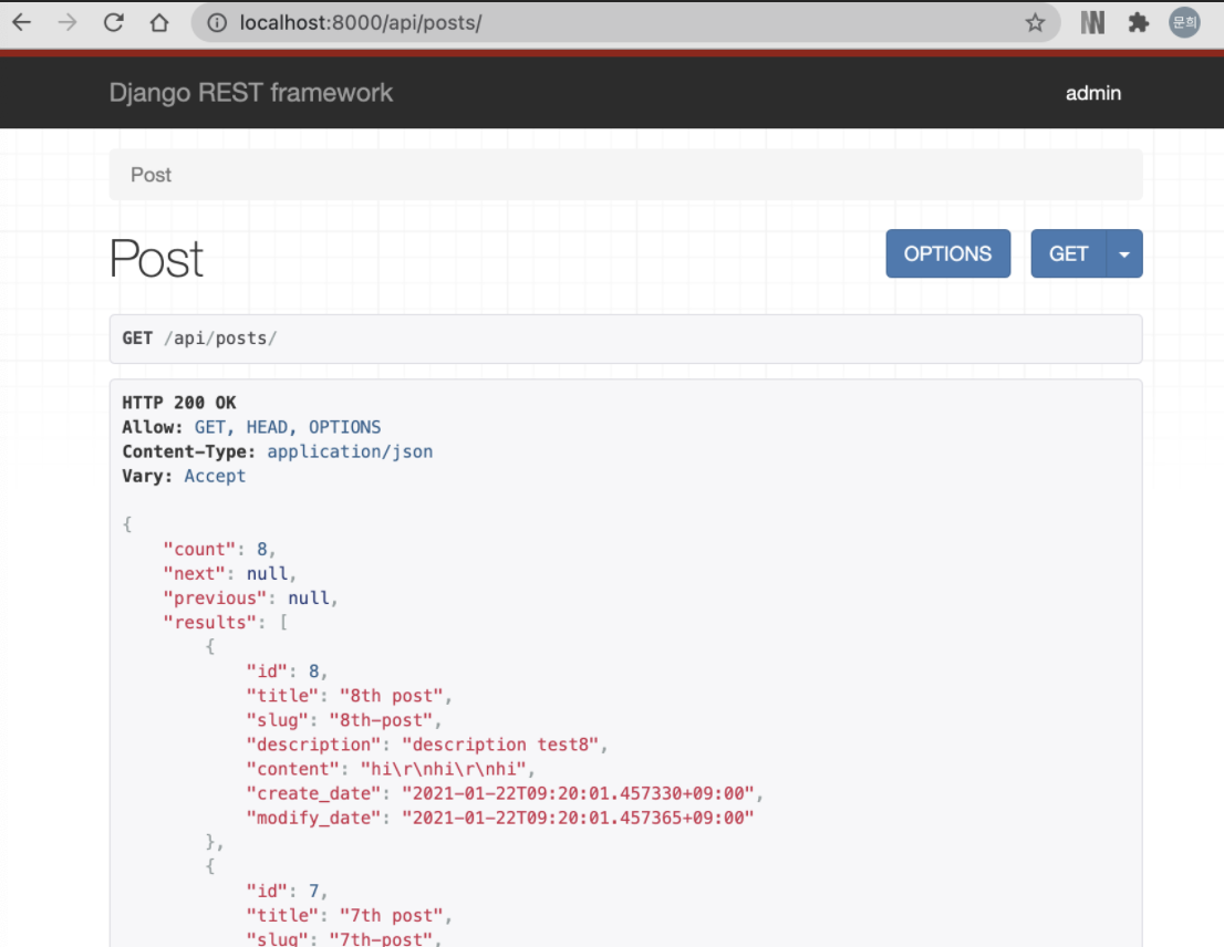 | 1/15 Django 4차시 - blog app 만들기(Maria DB, 페이징처리, django REST frame) (0) | 2021.01.15 |