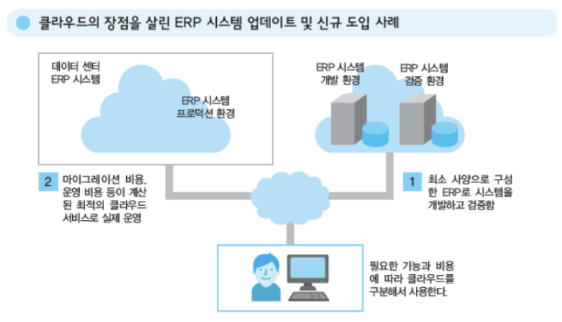 ERP 시스템을 업데이트하거나 신규로 도입할 때에는 클라우드 서비스가 제공 하는 ERP의 최소 권장 시스템 구성으로 시스템 개발 및 검증을 수행한 다음, 프 로덕션으로 이행하는 단계를 밟을 수 있습니다.