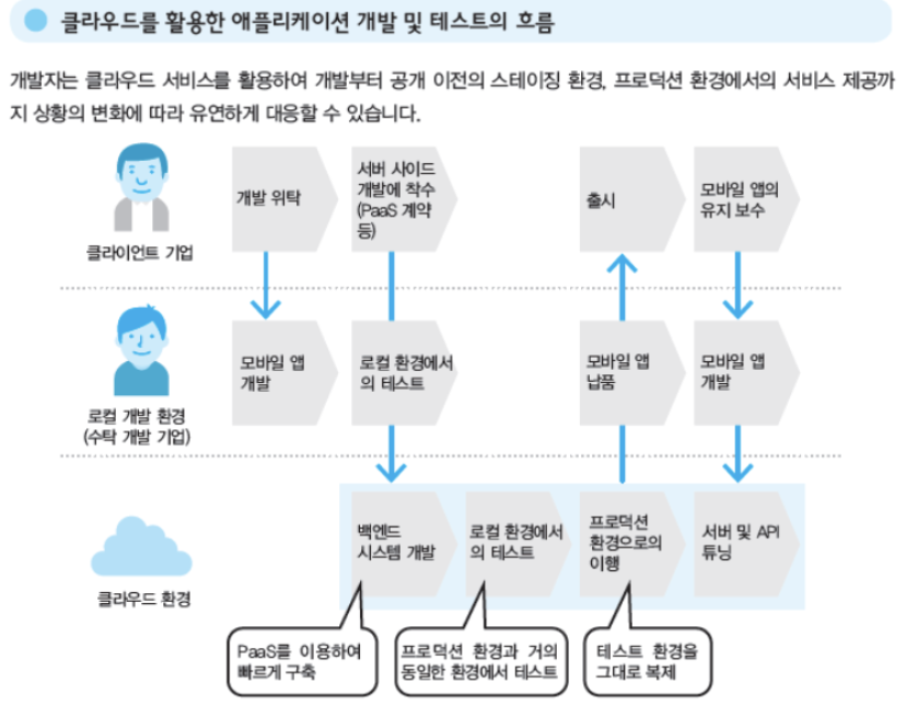 애플리케이션의 개발 및 실행 환경인 PaaS 형 서비스가 충분한 성능을 가지게 되어, 서버와 스토리지를 마련하여 OS나 미들웨어의 설정을 변경하는 등 개발 자 스스로가 개발환경을 유연하게 조달할 수 있게 되었습니다
