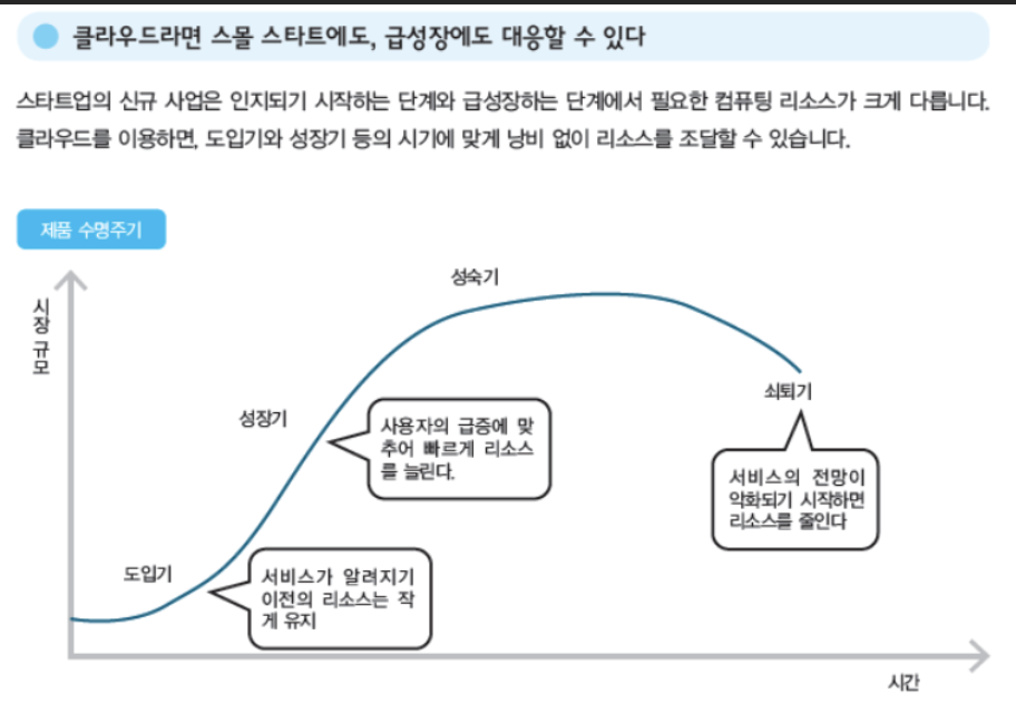 스타트업과 같은 중소기업이 새로운 서비스를 출시하여 사업을 전개할 즈음에 는 서버 등 IT 시스템에 대한 투자가 큰 부담이 되곤 했습니다. 이러한 기업에 있어 IT 시스템을 보유하지 않고 필요할 때 필요한 만큼 컴퓨팅 리소스를 사용 할 수 있는 클라우드 서비스는 사업을 시작할 때 아주 효과적인 도구가 되고 있 습니다.